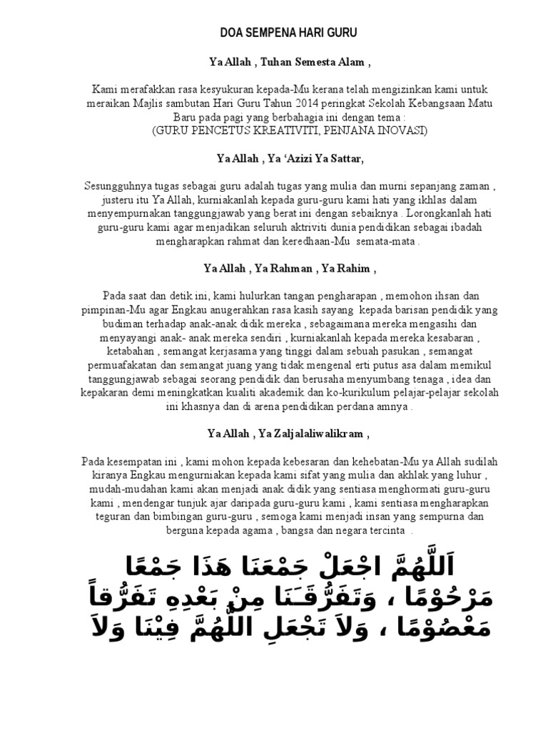 Teks Doa Majlis Rasmi Hari Guru Pdf