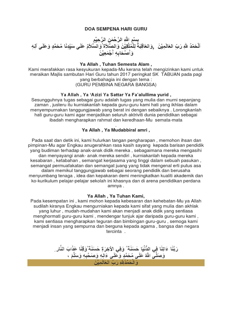 Doa Sempena Hari Guru 2017 Pdf